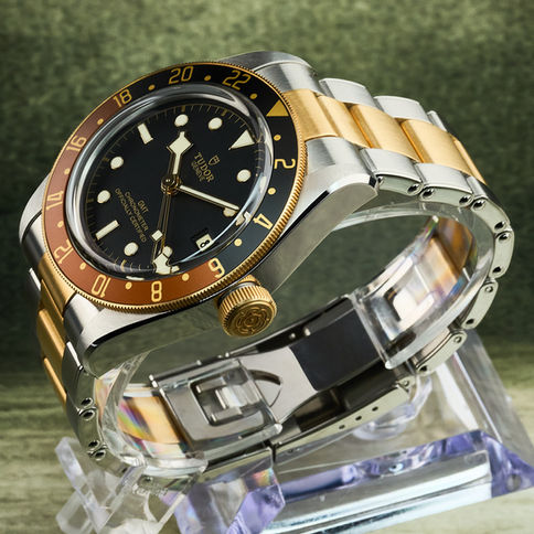 A bold and highly recognizable take on Tudor’s modern travel watch, the Black Bay GMT brings together vintage-inspired design and practical functionality in a versatile two-tone configuration. The black dial offers strong contrast against the warm steel and gold case and bracelet, while the 41mm case gives it a substantial yet wearable presence on the wrist. With its distinctive GMT bezel and everyday versatility, this reference remains one of the standout models in Tudor’s sport collection.